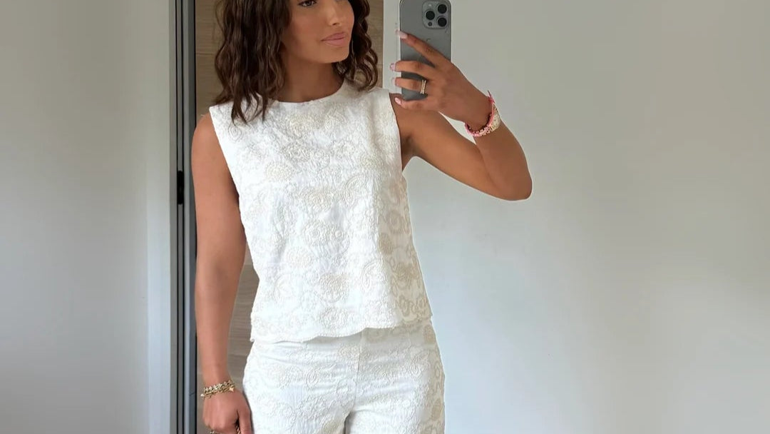 Ensemble avec haut noué et pantalon léger blanc